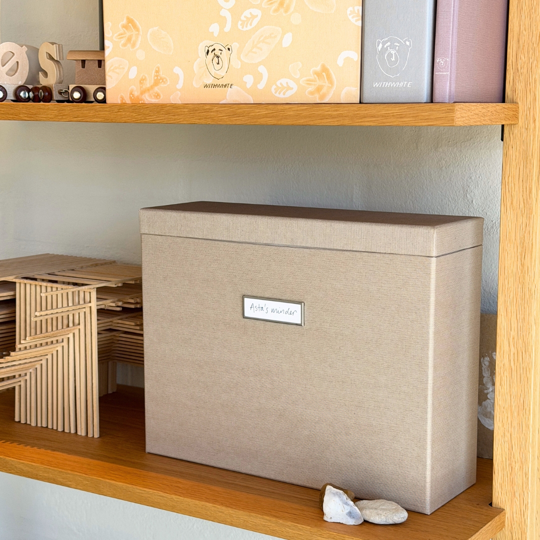 Vores produkter inkluderer bl.a. vores bedstsælgende barnets bog i ringbind, keepsake collection, milepælskort og aftrykssæt til hænder og fødder.